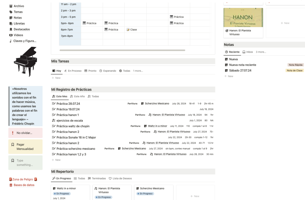 ¿Sueñas con alcanzar la excelencia en el piano? Imagina tener una herramienta mágica que te guíe en cada paso de tu viaje musical. Presentamos Master Piano, una plantilla de Notion revolucionaria diseñada para llevar tu práctica al siguiente nivel y más allá.