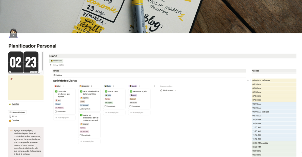 Mantén el control de tu día de forma clara y organizada. Escribe tus tareas y prioridades para que nada se quede atrás. 📌 -